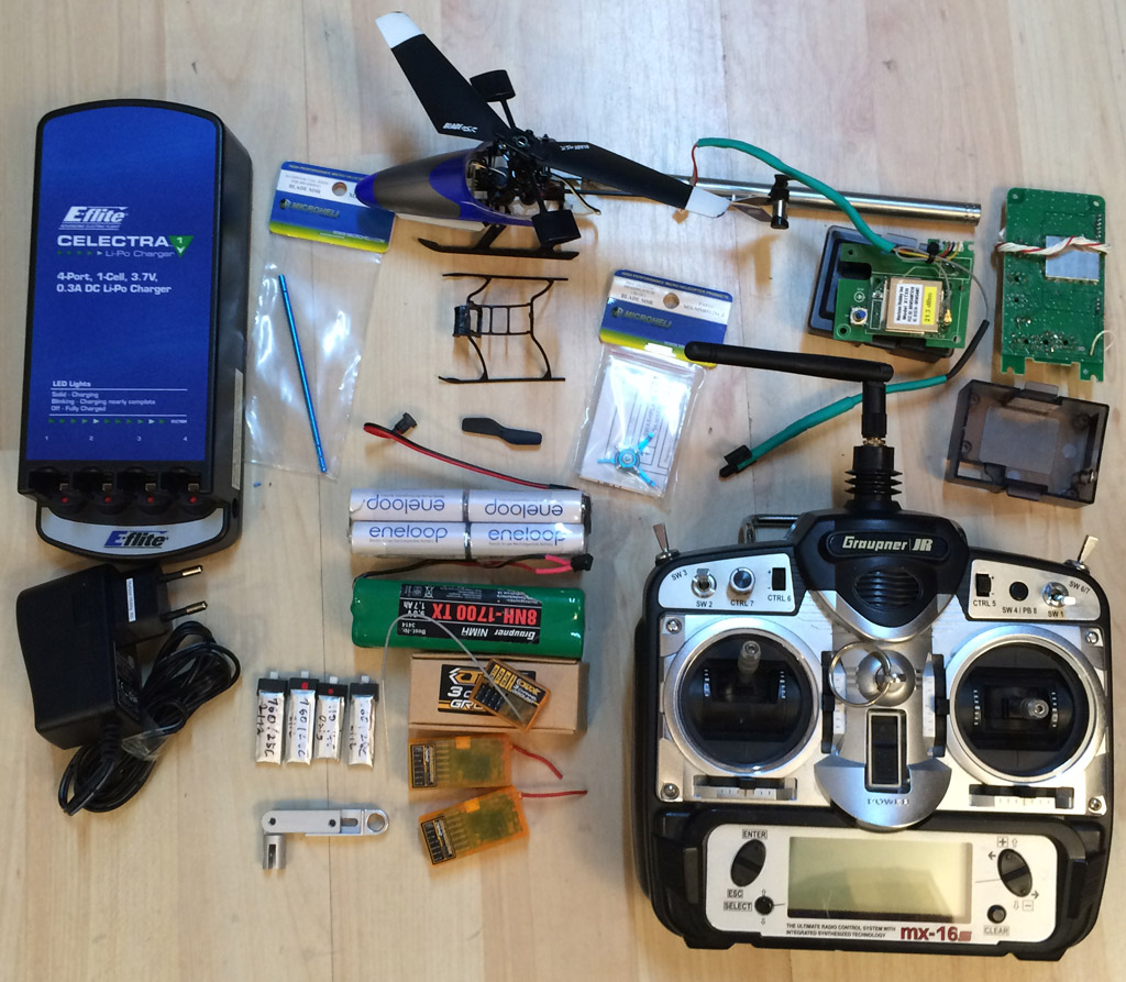 - Zimmerhubschrauber Blade MSR (Landegestell gebrochen darum als defekt verkauft, gibts aber als Ersatzteil) inkl. Ladegerät und 4 Akkus (Akkus zum ausprobieren geeignet, halten aber nur noch sehr kurz) und Ersatzteilen (s. Bild)