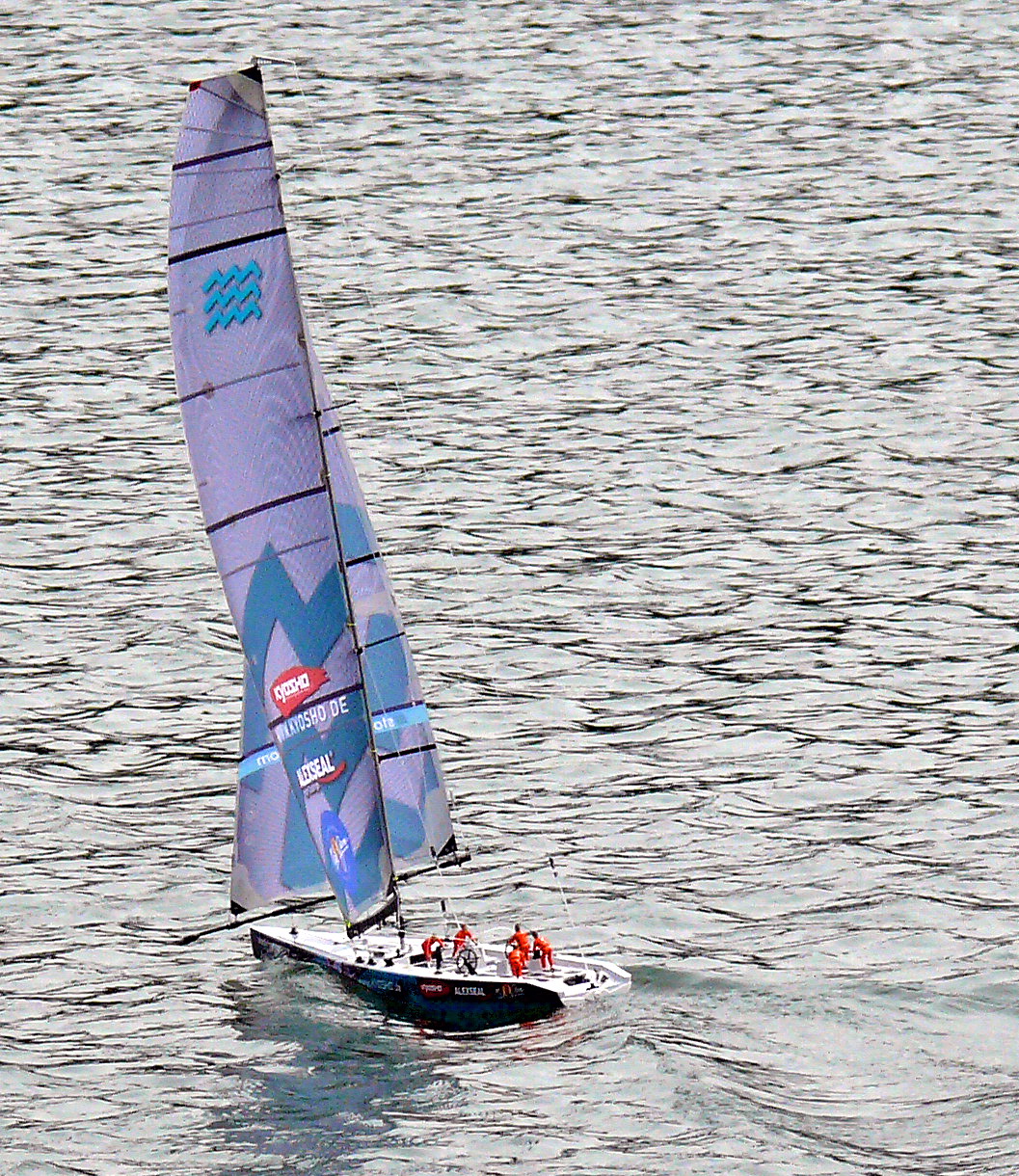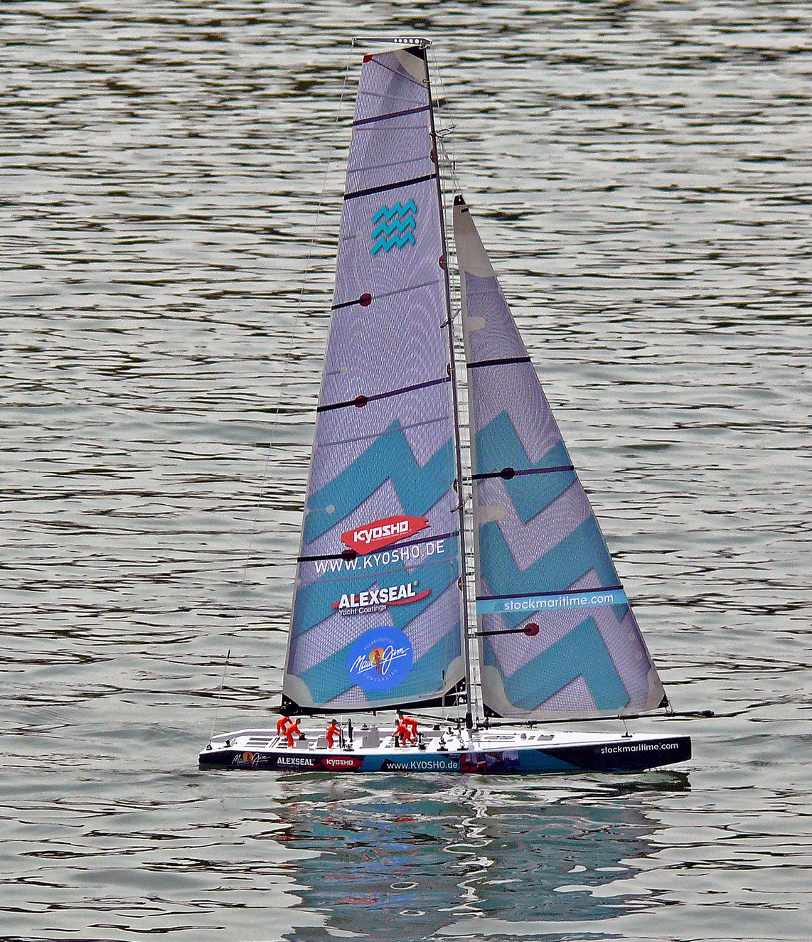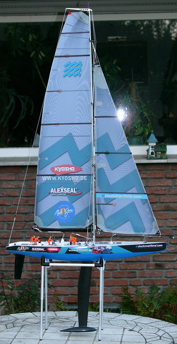 Mittlerweile kaufte ich zum aktuellen Preis von 215 Euro inkl. Versand eine Dragonforce vom Händler. Die Segel kamen zerknittert an und bei der Junfernfahrt verabschiedete sich nach der zweiten Wende das Steuerservo. Das Servo wird vom Händler getauscht. Neue Segel habe ich jetzt bei Arne Semken bestellt.