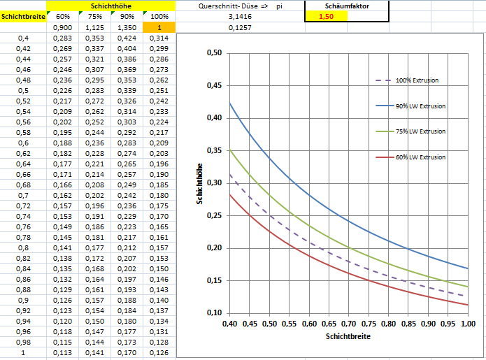 Das Aufgehen des Materials nach Austritt aus der Düse hängt wohl sehr von der Druckgeschwindigkeit ab.