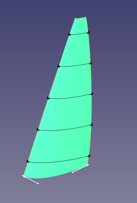 Normalerweise würde man ein Segel über willkürliche Profile und Loft bzw. Gordon aufziehen.