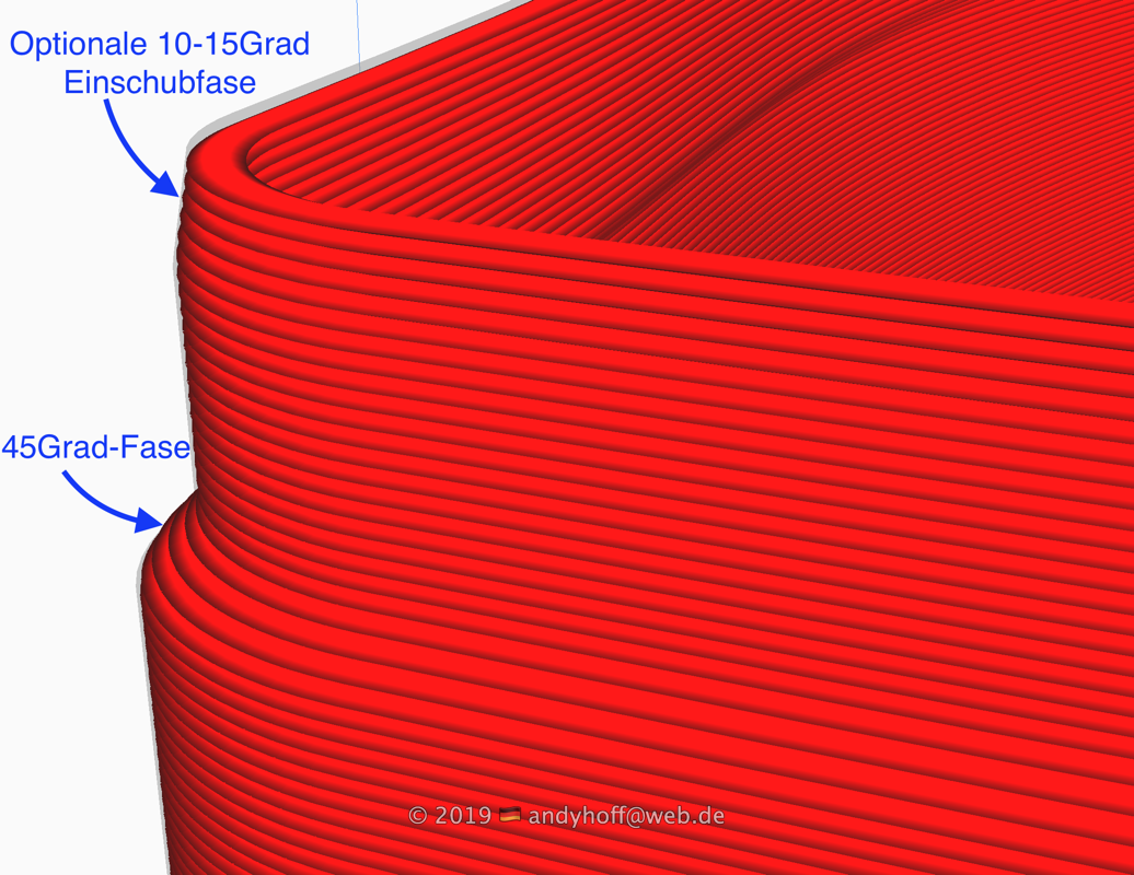 Und wenigstens eine 45Grad Fase ist zwingend nötig! Sonst kann das nicht im Vasenmodus gedruckt werden!