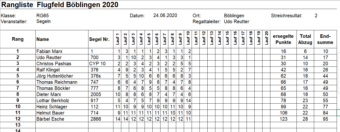 Dann begann das starke Mittelfeld mit 5 Seglern und zwischen 44 und 55 Punkten. Dementsprechend heiss waren auch die Kämpfe im Mittelfeld. Besonders beeindruckend die Leistung von Thomas B. bei seiner ersten Regatta! Auch Jörg H. ist bei der RG noch ein unbeschriebenes Blatt.