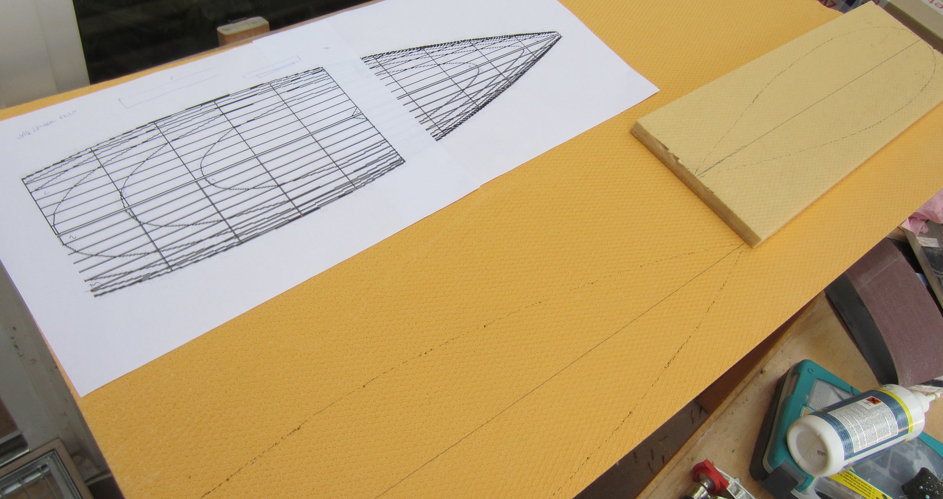 Als Vorlage dienen die grobpixeligen Bilder der Qroo. Auf 65cm länge skaliert natürlich. Ja, möglicherweise ist bei den Rissen die Beplankungsdicke abgezogen. Ich hab's daher etwas mehr in die Breite als in die Länge gezogen und es geht ja nicht darum, eine Meisterschaft zu gewinnen. ;) Jedenfalls fand ich die Qroo optisch ansprechend und habe sie deshalb ausgewählt.