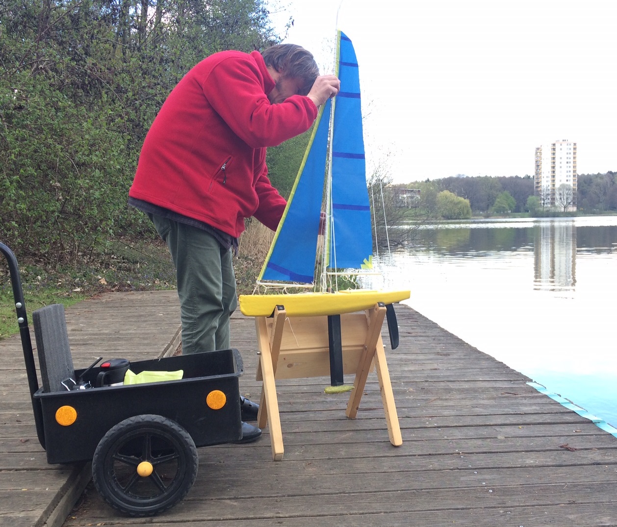 Seit einigen Jahren bin ich dabei sowohl eine Palo de Agua als auch einen auf 1,65m skalierten AC-Klassiker zu bauen - Berichte gerne bei Interesse und Gelegenheit... Dank des Liebevollen Verständnisses meiner inzwischen Frau höre ich von ihrer Seite sogar weniger Unmut, als von mir selbst mit diesen Langzeitprojekten. Gleichwohl kommt mit der Sonne und den ersten Blättern im Freien wieder mal der Wunsch, doch endlich mal wieder - zumindest wenigstens Modellweise - Segeln zu gehen.