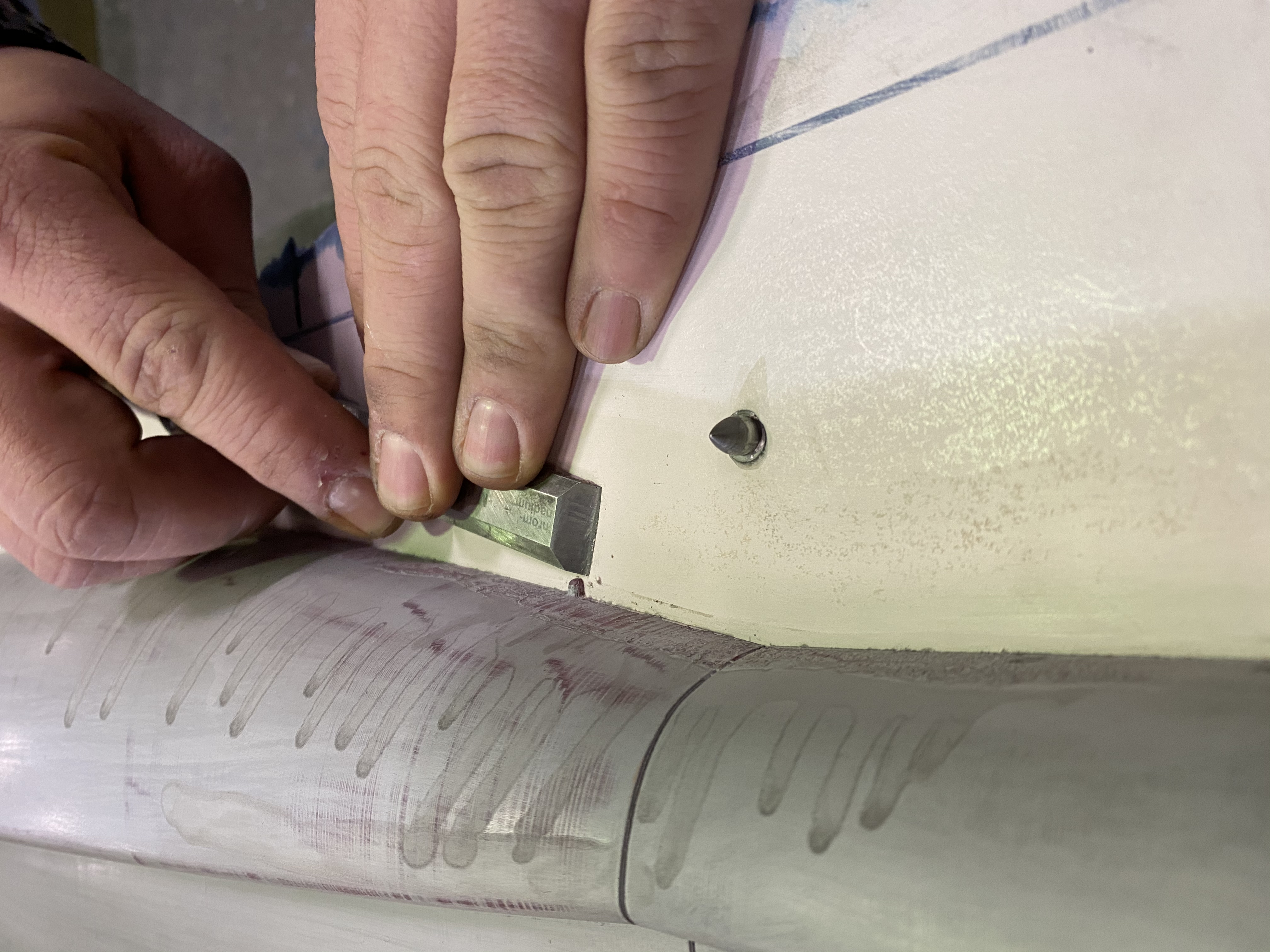 Mit Druckluft wurden kurz nach dem Auftragen die wichtigen Kanten im Rumpfbodenbereich ordentlich abgepustet, damit sich bloß kein Wachs ansammelt und später miese Spuren dort hinterlässt, wo man sie nicht haben will....