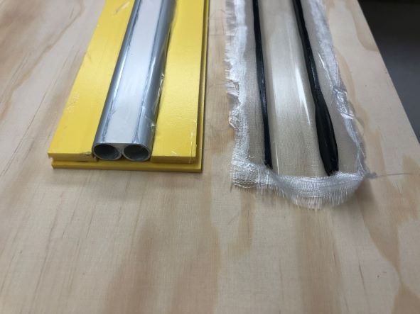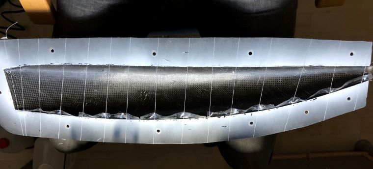 Aufgrund des doch sehr papierartigen Laminats musste ich doch in zwei Bereichen für etwas mehr Stabilität sorgen. Dieses ist zum einen das Rohr für die Schotdurchführung, wo ich den Decksduchstoßpunkt diagonal mit zwei Streben auf die Ruderservohalterung abstützen musste damit der Rumpf bzw. das Deck nicht tordieren / verformen kann wenn Last auf die Schot kommt bei dichtgeholtem Segel. Und zum anderen vorne im Bug. Dort sind die Bordwände sehr eben und geben merklich bei Druck nach innen nach. Um dieses zu vermeiden habe ich passend einen Längsspant gebaut der beide Bordseiten miteinander verbindet. Dieser Spant besteht aus 2mm Airex mit 90g Carbongewebe auf jeder Seite und entsprechenden Ausschnitten. Der brachte grade mal 3g auf die Waage und ist nur mit Sekunde im Rumpf fixiert. Für die nun vorhanden Festigkeit hätte man doch einiges mehr an Gewebe und Harz gebraucht wenn der Bootskörper diese alleine zu erfüllen hätte.