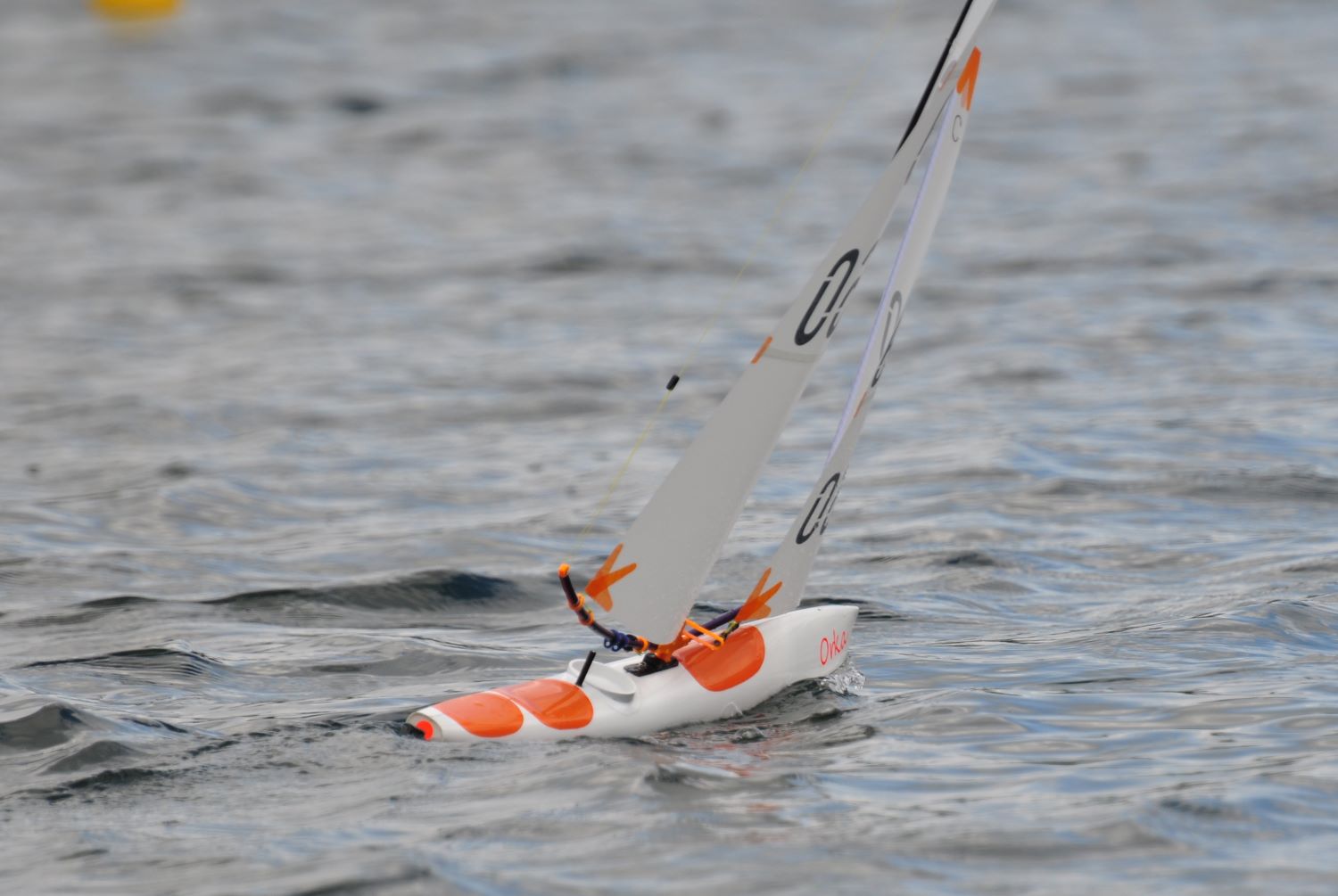 Auf der Regatta selbst, lief alles bis zum ersten Start gut. Die ersten 20-30min einsegeln davor sahen vielversprechend aus. Aber 10m nach der Startlinie verabschiedete sich das Segelservo aufgrund einer Leckage und jeder Menge Wasser im Boot.