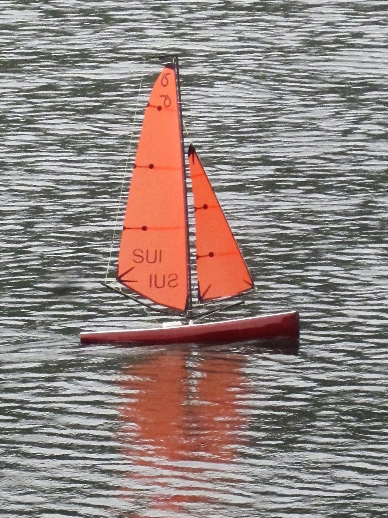 Das Boot ist nun mit Klarlack gespritzt, ist sehr schön geworden. Nun geht es noch an den Einbau der Elektronik und das Anbringen der Patches und dann kann das Boot seinem Element, dem Wasser übergeben werden. Die Jungfernfahrt ist gut verlaufen, das Boot liegt sehr schön im Wasser und springt auch bei schwachem Wind gut an.