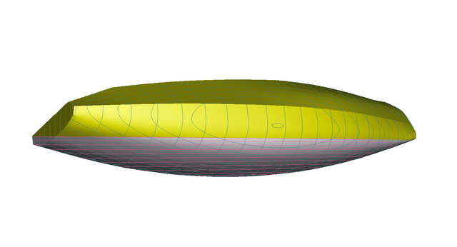 Ich drehe und bestimme dann die Wasserlinien neu, so daß die Verdrängung wieder stimmt.