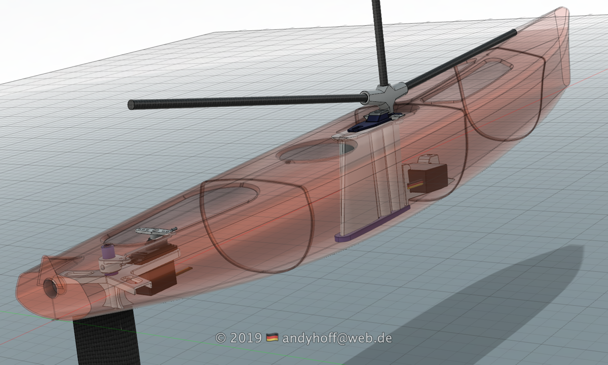 So gelingt der Ruderwechsel schnell und problemlos auch ohne Steckruder. Das hatte ich schon bei den meisten meiner Booten so in der Art gelöst. Mit den CAD und 3D-Druckmöglichkeiten geht das aber natürlich alles etwas besser :)