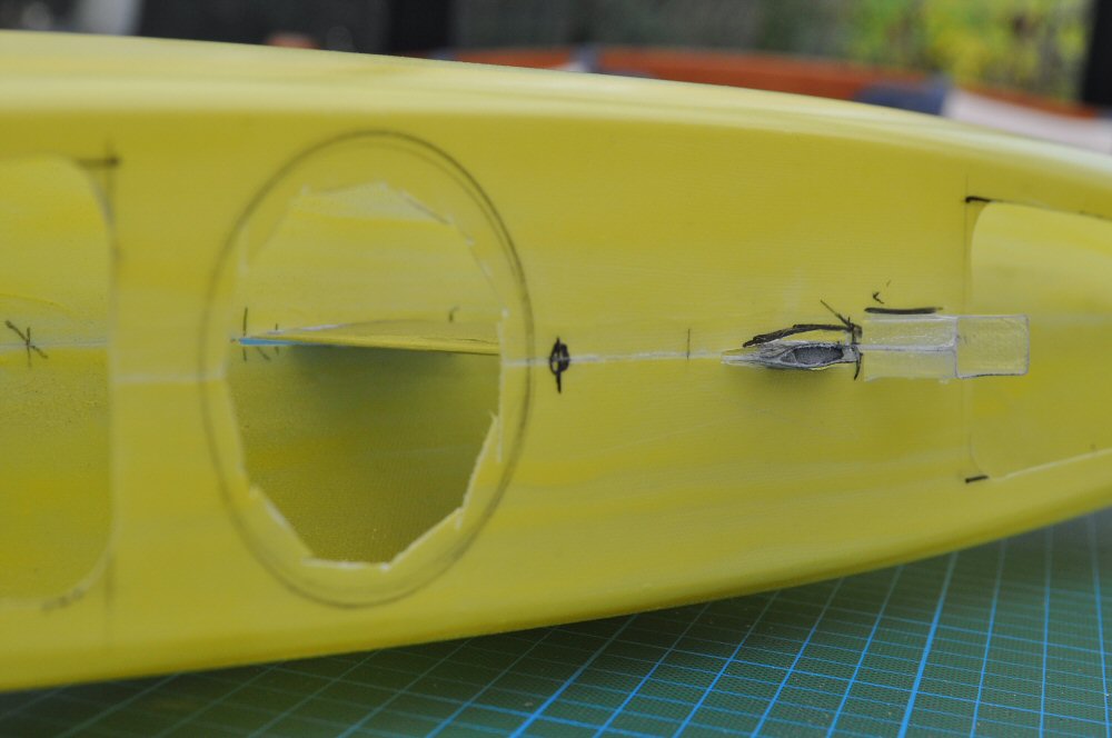 Anders als bei Rolands Entwurf habe ich mich entschieden, einen 50mm Deckel zwischen Schot und Mast einzubauen. Dadurch möchte ich den Akku möglichst dicht an den Kiel bekommen.