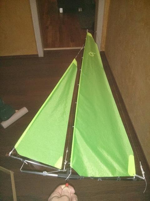 Da nun Trocknungspause angesagt ist, kann man am Rumpf erstmal nichts machen und in der Zwischenzeit hab ich das Rig angefangen. Dazu ist, ausser das was in der Anleitung steht eigentlich nichts zu sagen. Ich hab alle Beschläge und Klemmschieber aus vernickelten Büroklammern gemacht. Die Klemmschieber hab ich nach einer Anleitung "Humble Bowsie" gemacht aus der Footy-Szene. Klappt echt gut! sieht nur nicht soo dolle aus, wie gekaufte. Vielleicht mach ich auch noch mal neue aus Lochplatine oder Servohörnern, mal sehen... Statt der Kabeltüllen hab ich kurze Schlauchstücke genommen. Das Trimmen der Segel war für mich als 1:1 Segler etwas merkwürdig, da der Schnitt selbst ja kein Profil hat, ging aber nach der Anleitung dann doch wie von selbst. Einzig die Segellatten vermisse ich. Im Plan gibts keine, aber das Achterliek ist schon etwas - naja - "loose". Ich probier das so erstmal. Latten kann man ja immer noch reinkleben.