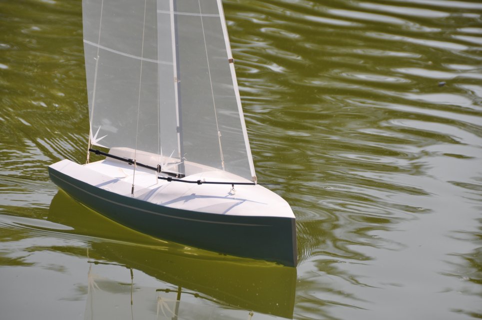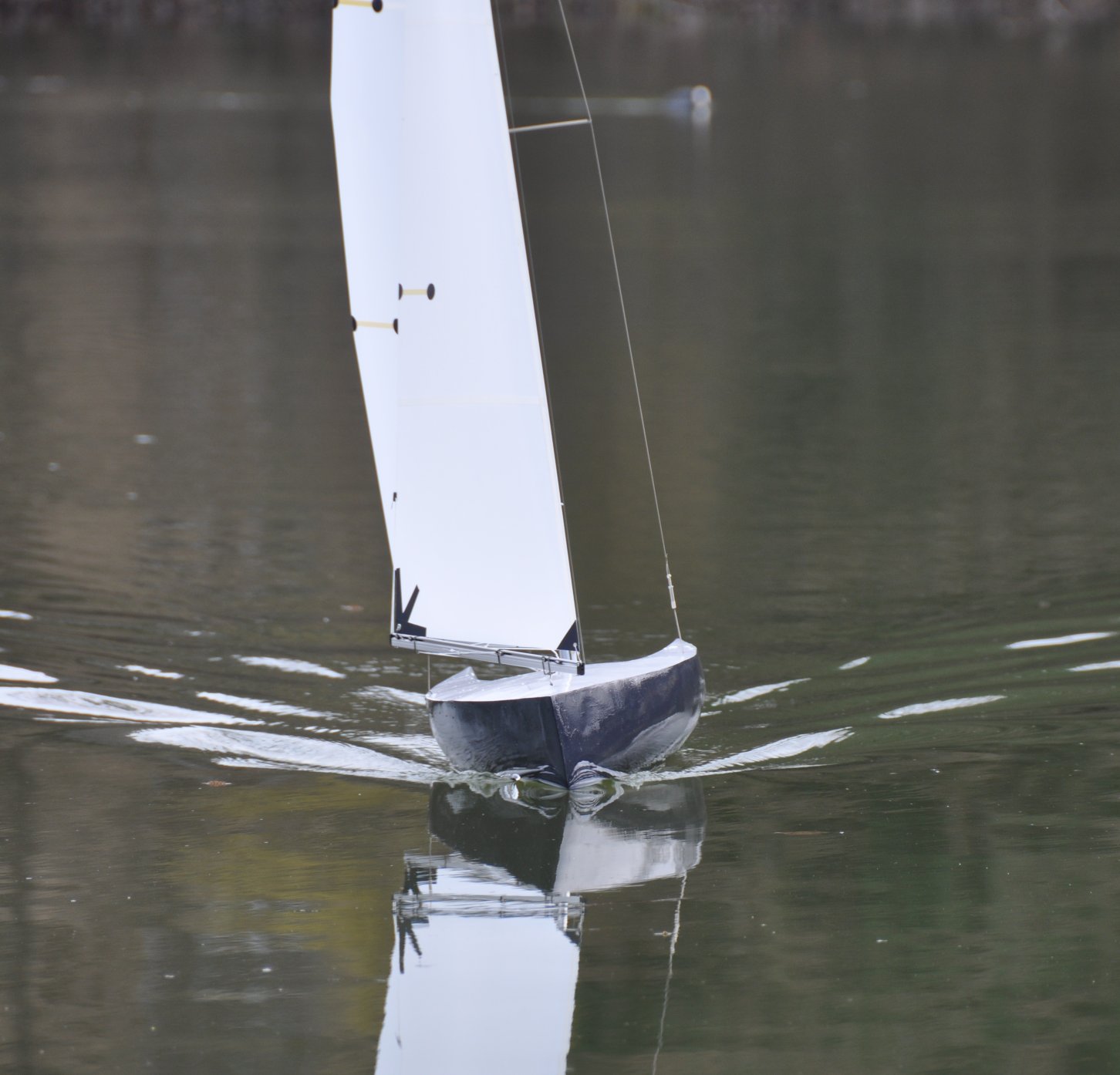 Nun ist mein Projekt, aus baulicher Sicht eigentlich fertig und die ersten Ausfahrten wurden unternommen. Fazit: das Boot schwimmt, fährt in die vorgesehene Richtung und ist bis jezt nicht untergegangen. Wahrscheinlich keine wirkliche Rennziege, aber auch nicht eine lahme Ente. Werde noch etwas an der Segel- und Gewichtstrimmung tüfteln und auf Rg65-er Boote warten um einen wirklichen Vergleich zu erhalten. Freue mich auf Kommentare jeder Art.