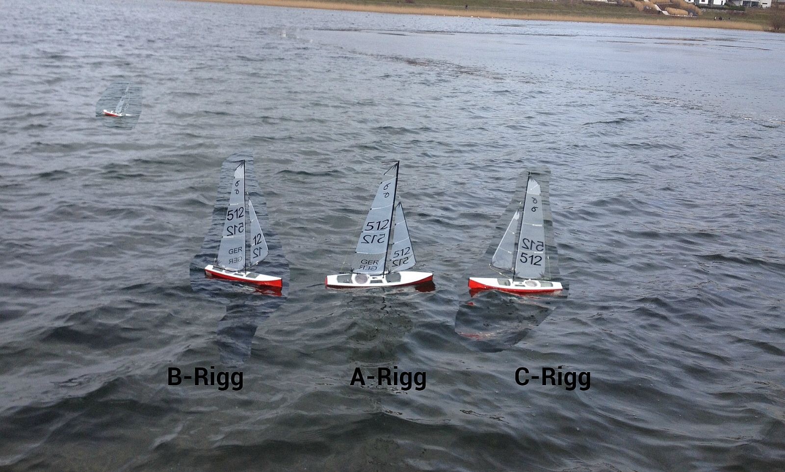 Und da man ja gleich wissen will wo man gelandet ist (das Gewicht kann man wiegen, sind 941gr heraus gekommen, damit habe ich den Konstrukteur leider um 6 gr übertroffen) konnte ich meinen alten Herrn motivieren, die RoKst als direkten Vergleich zu segeln. Er bekam das A- Rigg und ich das B-Rigg drauf und los gings … und sagen wir mal so ... ich bin seeeehr zufrieden