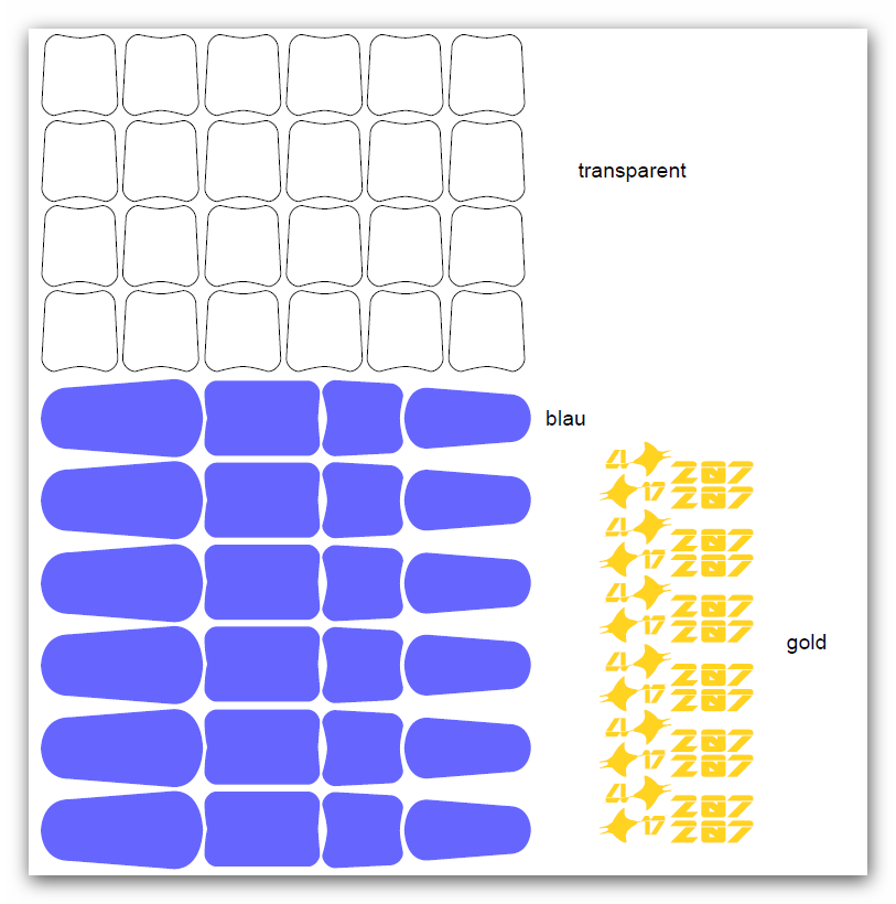 Ich lass die immer vom Autobeschrifter plotten. Für den Zugang immer transparent, die anderen auch schon mal in Farbe. Hab immer reichlich davon. Das ist das PDF für den Plott.