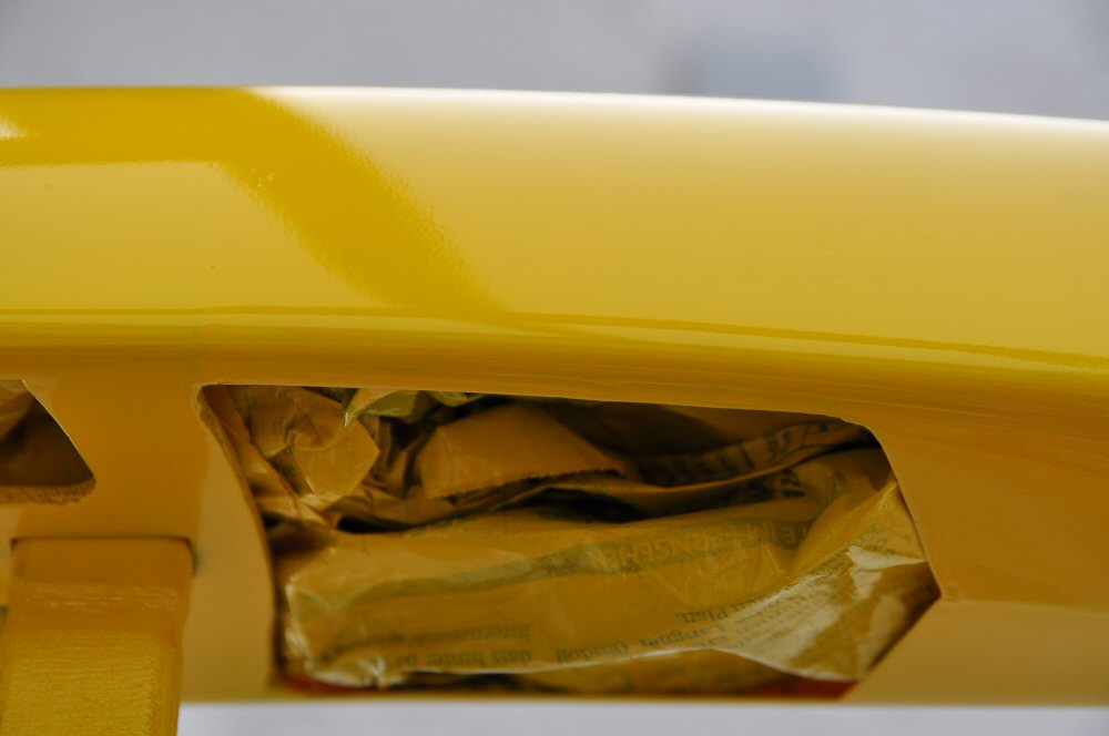 Nr. 19 wird wiederbelebt ! Habe die betroffenen Stellen Innen und Außen angeschliffen und von Außen mit Folie abgeklebt.Danach Innen jeweils 2 Stücke 80gr.-Gewebe eingeharzt.Hat gut geklappt.Nach Spachteln und Schleifen jetzt fertig zum Lackieren.