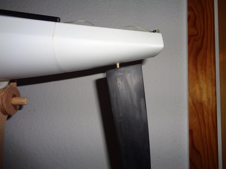 Wundere dich nicht. Auf dem Bild ist das Ruderblatt nur zu Probe eingebaut. Darum der Abstand zum Rumpf.