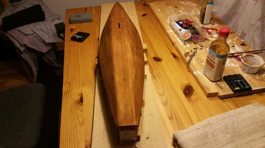 Baue auch gerade an der 5hoch5. Habe den Rumpf in 3 mm Balsa auf 2 mm Sperrholzplanken jetzt fertig. Geschliffen und das Balsa in einem Teakton gebeizt. Will es von Ihnen mit Epoxy und von aussen mit 5 Schichten Bootslack streichen. Es ist mein erstes Schiff in Planken auf Spantenbauweise. Habe bisher nur eine Basic-Jolle gebaut. Bin in soweit ganz zufrieden.