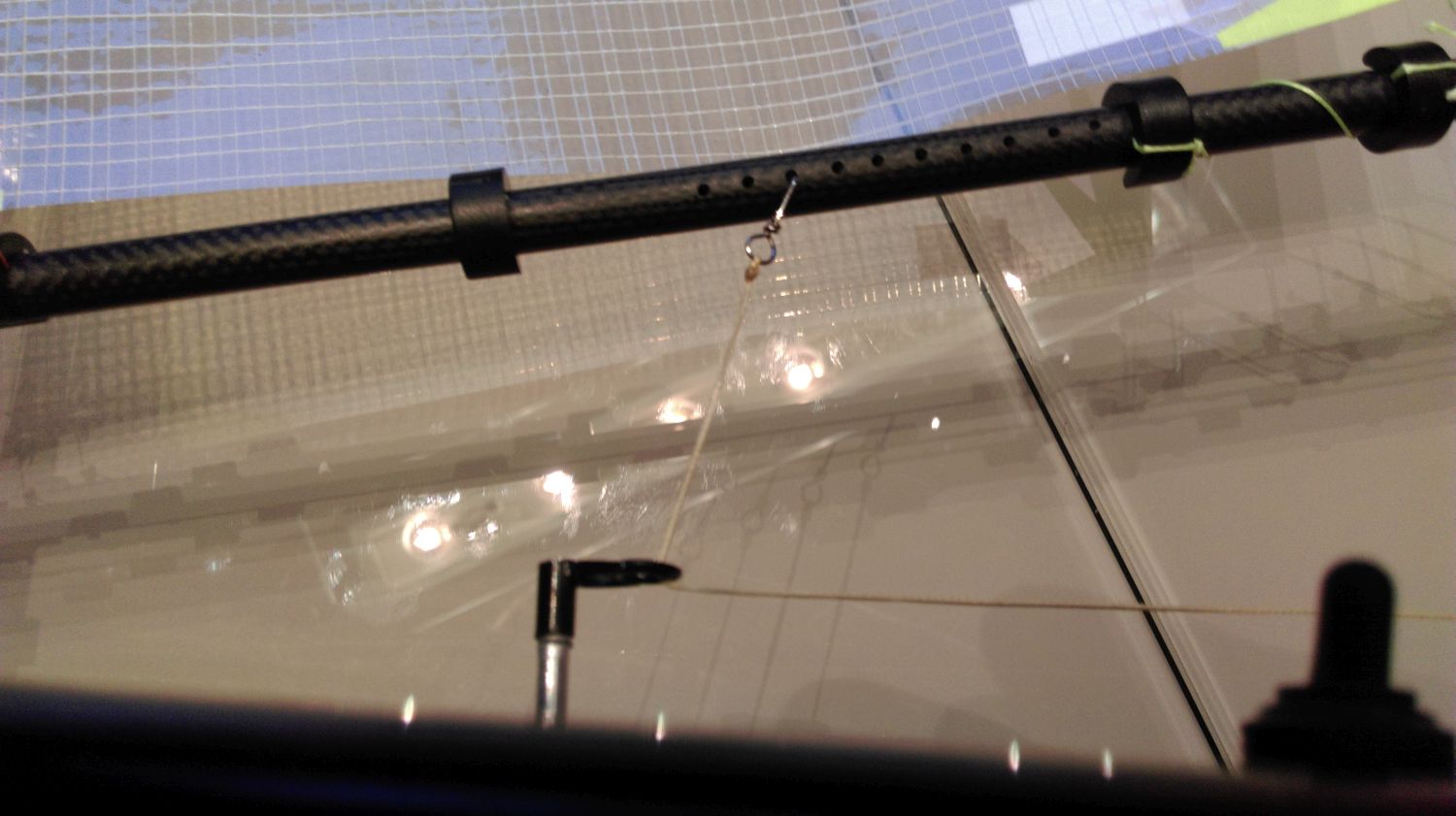 Nun war es so, das beim alten Rigg die Schot aus dem Rumpf herausgeführt wurde, über einen Klemmwinkel dann die Schot parallel unter dem Großbaum verlief, bis sie dann mittels eines Federstahlhaken in einer Bohrung am Groß eingesteckt wurde. Es war ein Klemmwinkel für 6 mm Rohr.