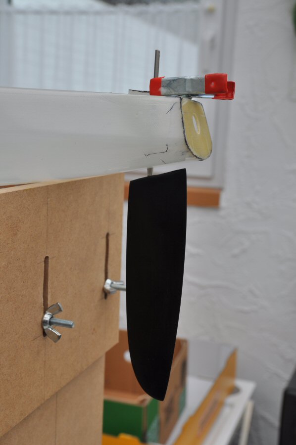 Durchbruch für Kieltasche angefertigt und Ruderkoker angepaßt.