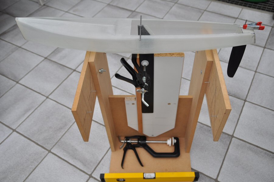 Rumpf,GFK-Sandwich für das Deck-Steven-Spiegel,CFK-Sandwich für Servohalterung,Ruderkoker von A. Hoffmann
