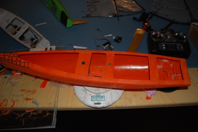 gewicht im moment 100g, es fehlen nur noch die servohalterungen und die verbindungsstege vom deck müßen noch laminiert werden.