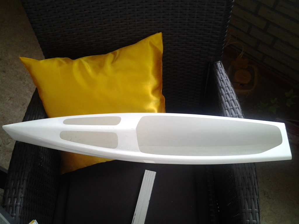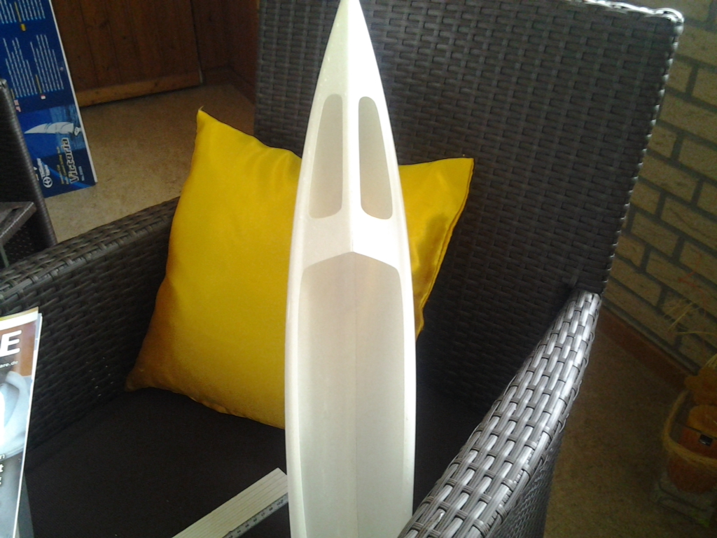 Der nackte Rumpf wurde heute vom überflüssigem Material befreit und morgen setze ich mich mal dran den Innenausbau zu gestalten und die vorderen Decksausschnitte zu erstellen!