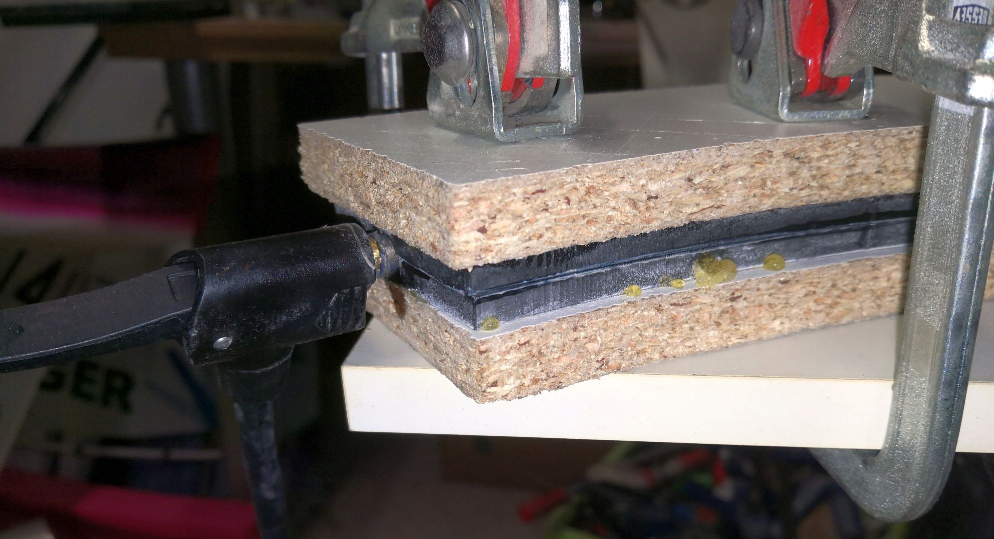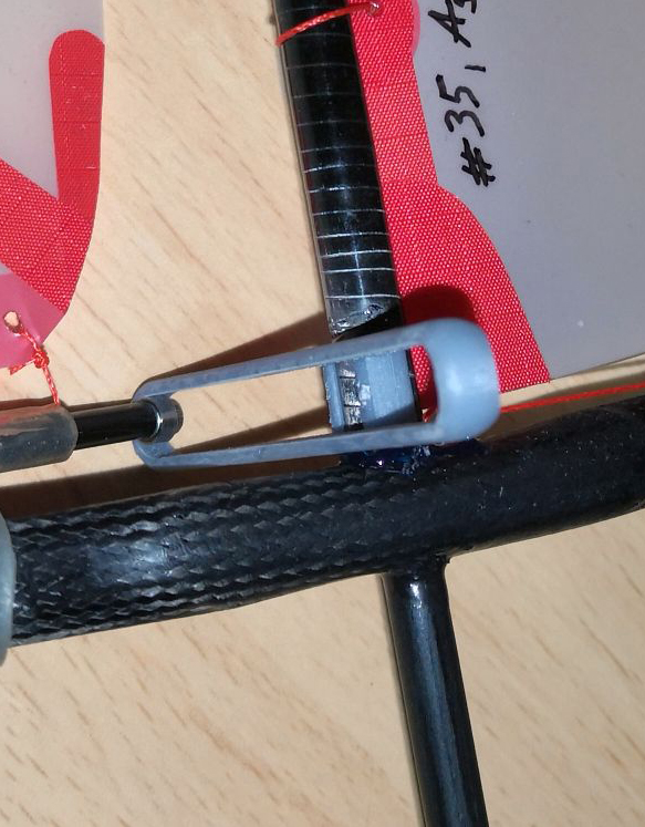 Deshalb ist mir irgendwann der "Traveller" in den Kopf gesprungen. Dadurch das er am Mast verklebt ist, wird die horizontale Ausrichtung perfekt gewährleistet. Er muss nur vor dem Fixieren passend zur Längsachse ausgerichtet werden. Das ist aber auch sehr leicht, denn der Fockbaum gibt die Ausrichtung vor.