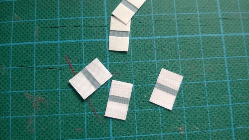 Am Vorliek der Fock kommen Laschen aus Icarex (oder irgendwas anderen das den Zweck erfüllt) mit einer Länge von ca. 10mm (weniger geht auch, mehr ist bei Leichtwindsegeln nicht so gut)