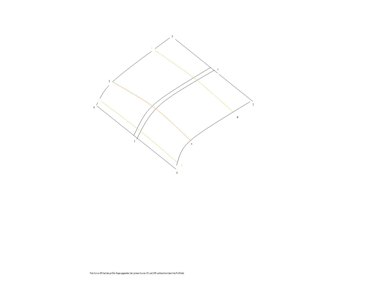 Die Profiltiefe wird durch das Verhältnis der Bogenlänge der roten zu den Bogenlängen der grünen Kurven bestimmt.