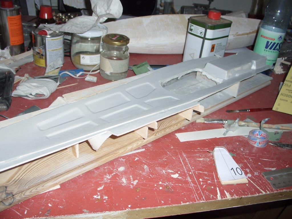 Rio hat geschrieben:Balsa ist leider sehr Harz-durstig. Ich würde vor dem Laminieren den Rumpf mit verdünntem Harz streichen und trocknen lassen. Anschließend schleifen, da sich sicher viele Fasern aufstellen. Das Ganze zweimal.