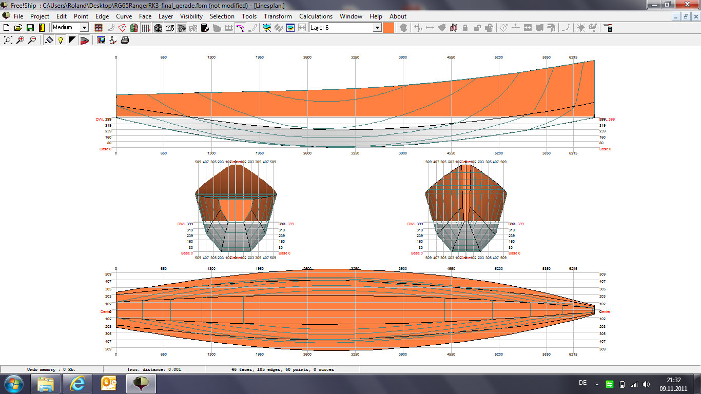 Die Kiellinie wird alo um ~2mm aufgedoppelt; das Boot mit 40mm Tiefgang schwimmt dann quasi 2mm höher.