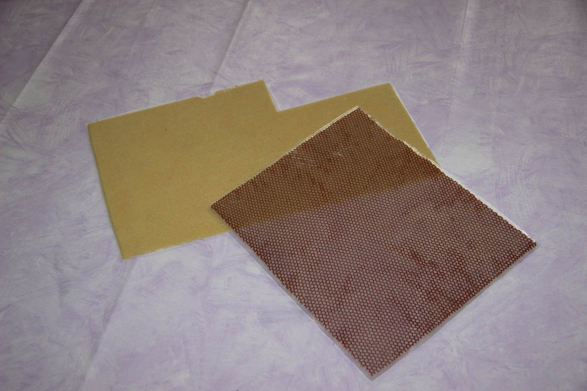 Bei der Wabe sieht man, dass sich ein paar Waben mit Harz vollgesaugt haben (bzw. es sind kleine "Bläschen") Auf der erste Seite hatte ich mit einer Rolle das Harz aufgebracht und die zweite Seite mit einem Pinsel... dabei muß ich nun im Nachhinein feststellen, dass das aufbringen mit der Rolle deutlich besser und gleichmäßiger ist! Beim nächsten Mal bin ich schlauer ;)