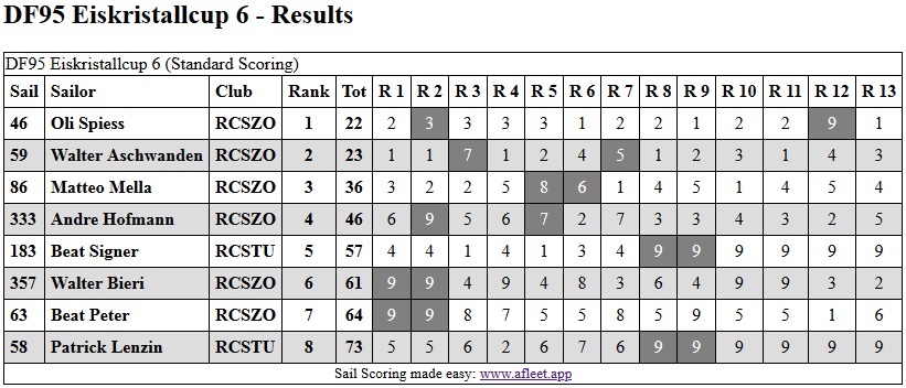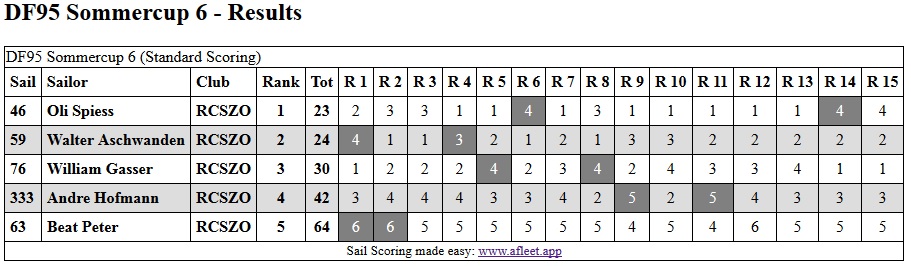 Zur letzten Austragung des DF Cup’s 2019 kamen bei sonnigem und warmen Wetter 8 Segler an den schönen Obersee nach Bollingen. Regattastart war, nachdem die meisten einen Kaffee und Gipfel hatten, um 10 Uhr.