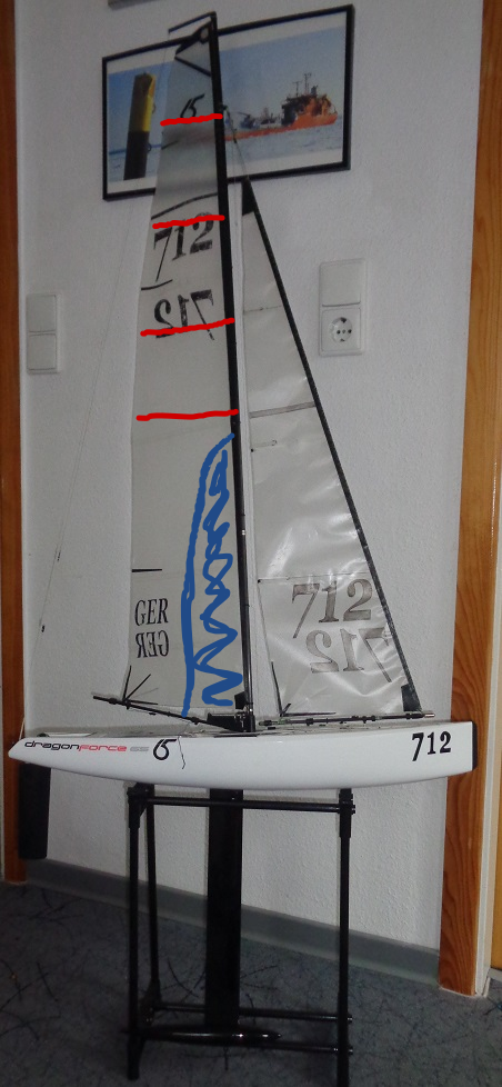Im Bild habe ich für Euch eingezeichnet. Reffpunkte und das letzte gereffte Großsegel.