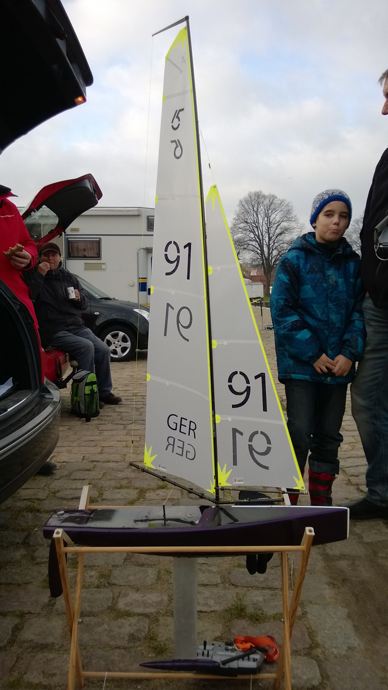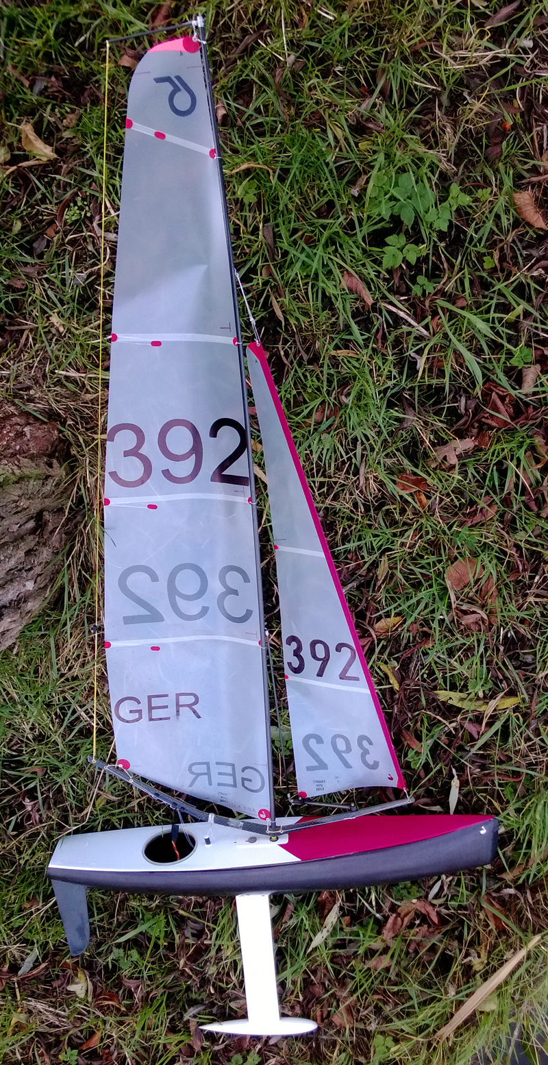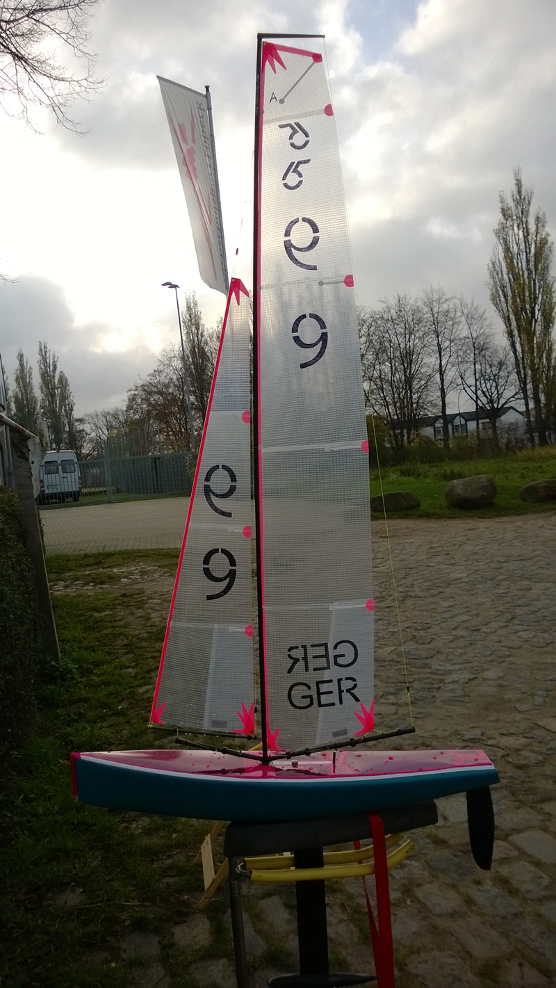Aktuell ist die Kielfinne weiter nach hinten gekommen und das ehemals verbaute 53mm Alurotorblatt wurde durch eine 47er Finne ausgetauscht. Das Boot fährt besser an der Windkante, schneller ist es scheinbar nicht geworden, das kann aber auch am Rigg/Segel liegen ... im Zweifel auch am Steuermann ;-)