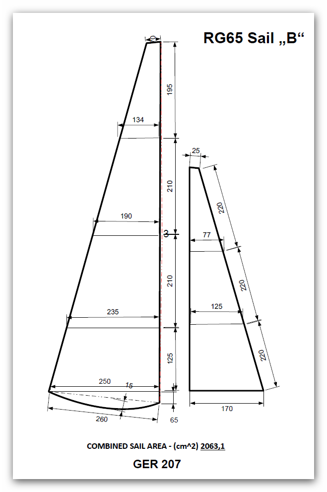 So wie versprochen die Messbriefe von den Segeln der Missile.
