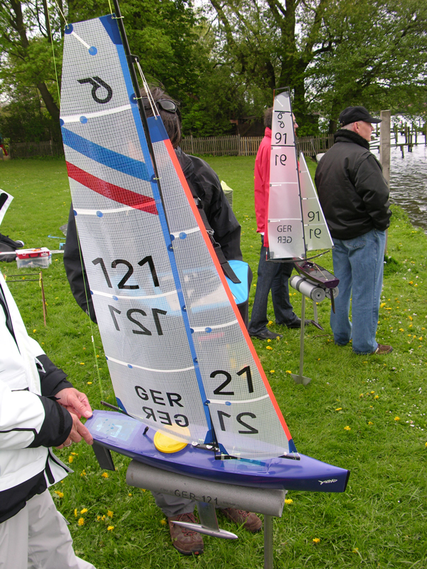 Das Boot von Michael hat, nach seiner eigenen Aussage, noch viel zu lange Anhänge (< 400 mm Tiefgang, 650 g Blei). Er hat einfach das genommen was er noch übrig hatte. Ich bin sehr auf das Boot gespannt wenn alles so ist, wie es sein soll.