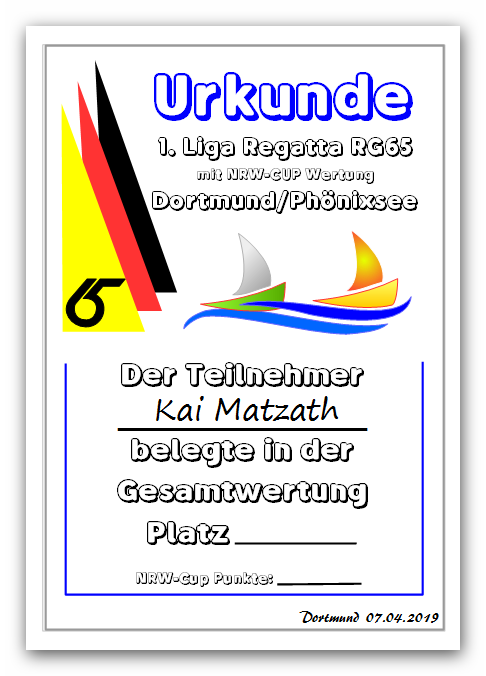 damit auch alle in der Tageswertung gemeinsam aufgeführt und nach erbrachter Segelleistung eine Urkunde (ups, nochmal Danke an Kai
