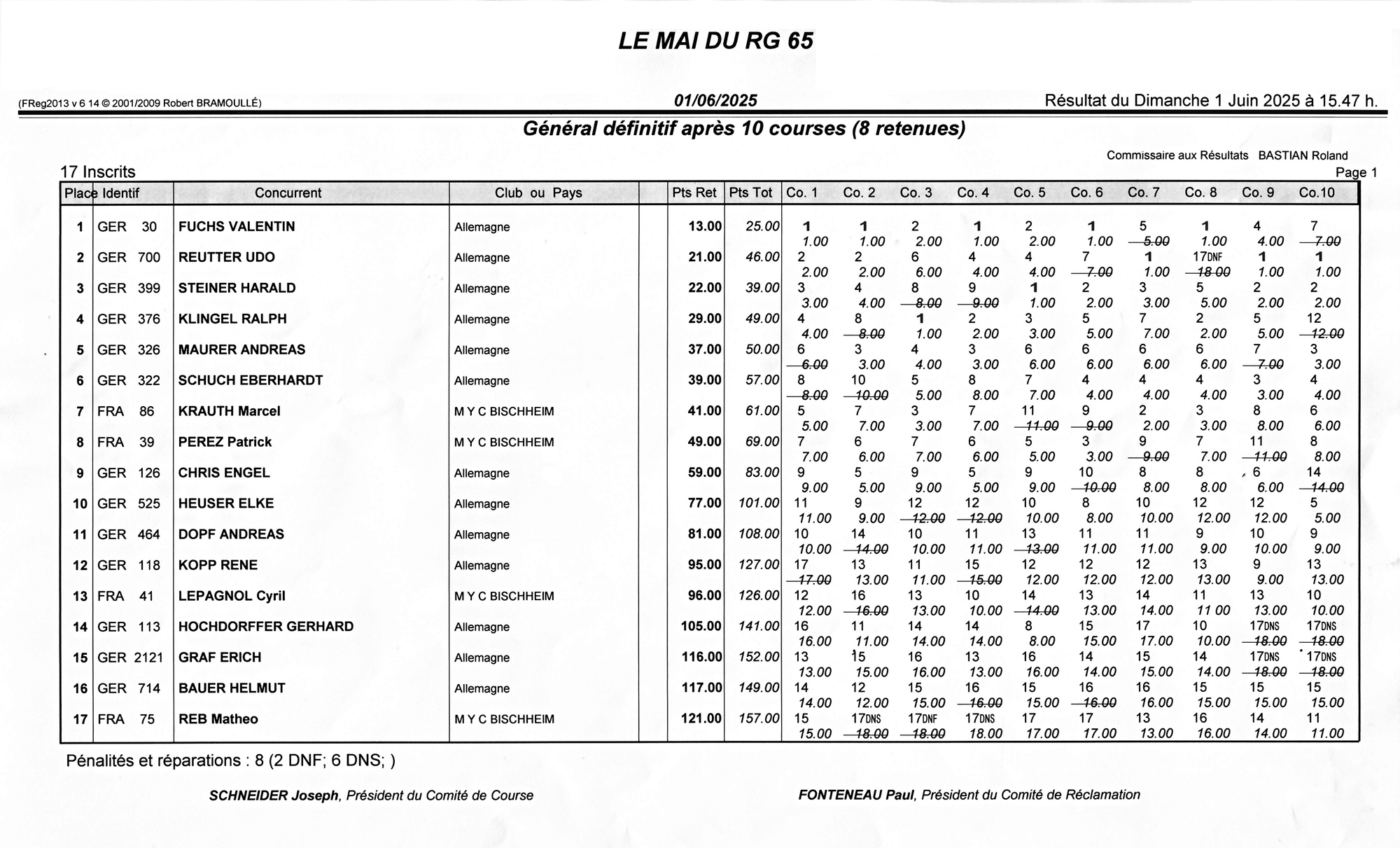 Die Ergebnisse der RG65-Regatta vom 01. Juni 2025 in Bischheim (Frankreich)