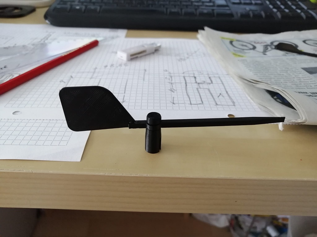 Jetzt gibt es ja massiv Zeit die mit basteln, düfteln etc. vertrieben werden kann. Ich habe mal einen ganz einfachen Windanzeiger, (OK, musste lernen in der Fachsprache ein Verklicker) für die DF65 steckbar auf A & A+ Rigg gedruckt. Der Ansatz geht in die richtige Richtung, testen muss ich ihn noch.