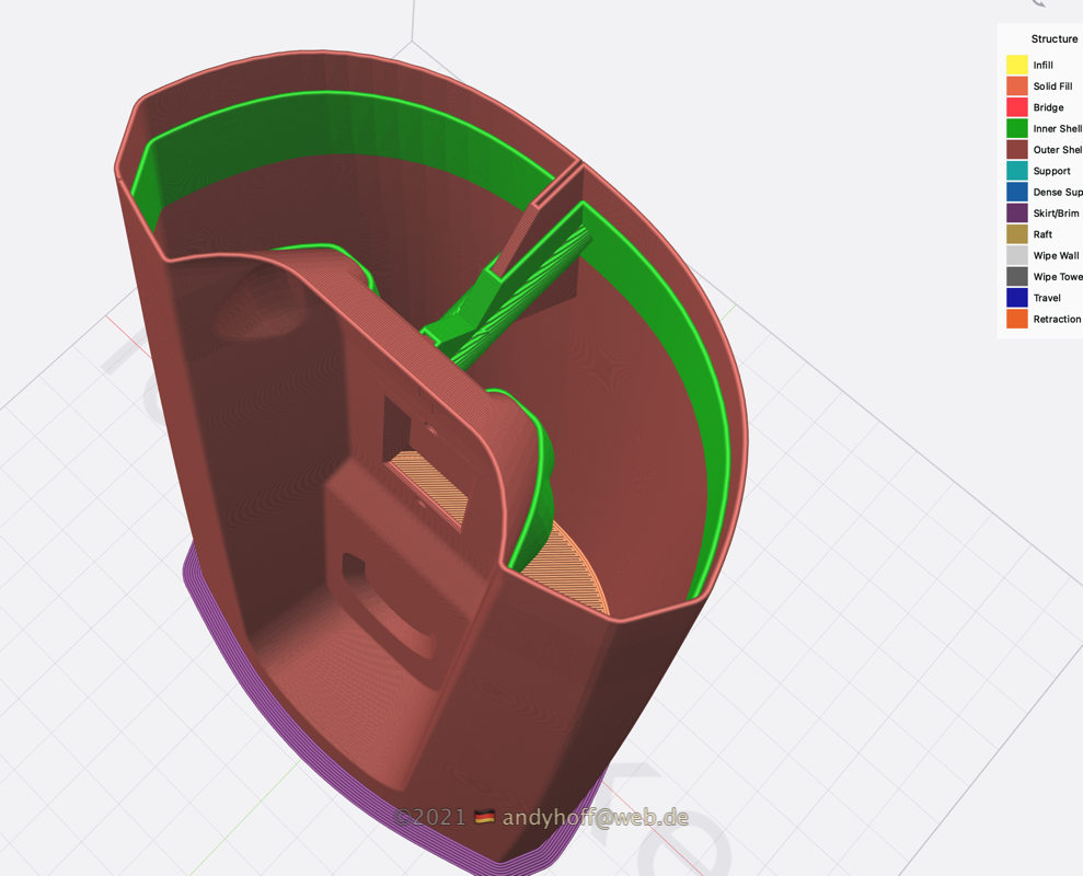 Ich werde den Schwertkasten so vorbereiten das er in einem Stück mit der Außenhaut gedruckt