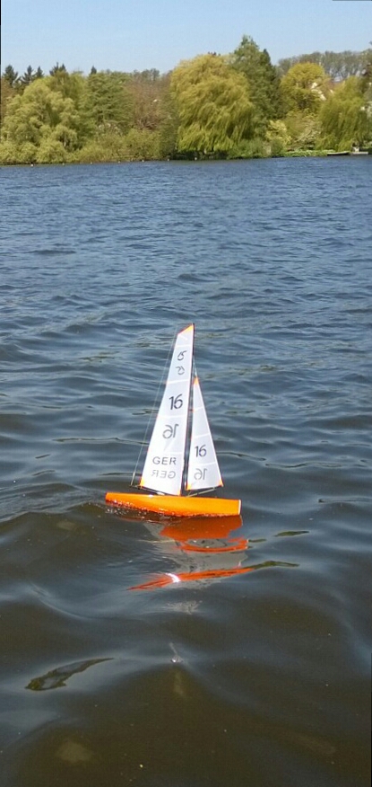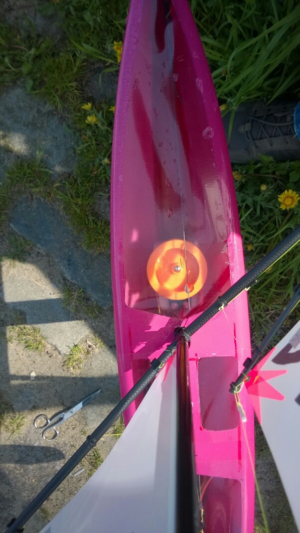 anders herum.Dafür konnte der Stellweg vom Segelservo auf auf 140 Grad vergrößert werden,das