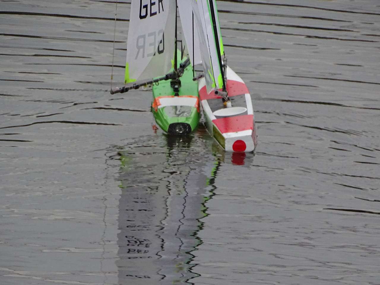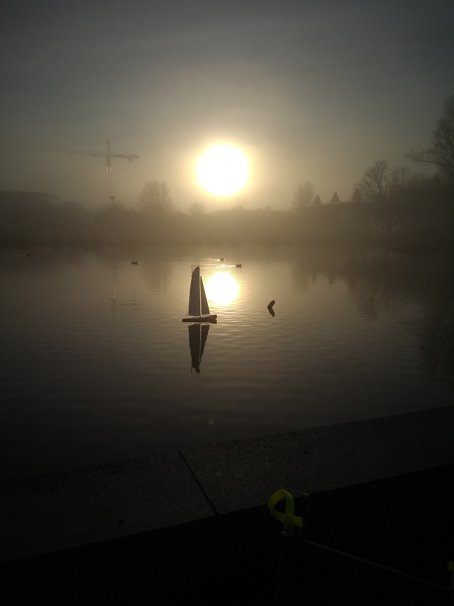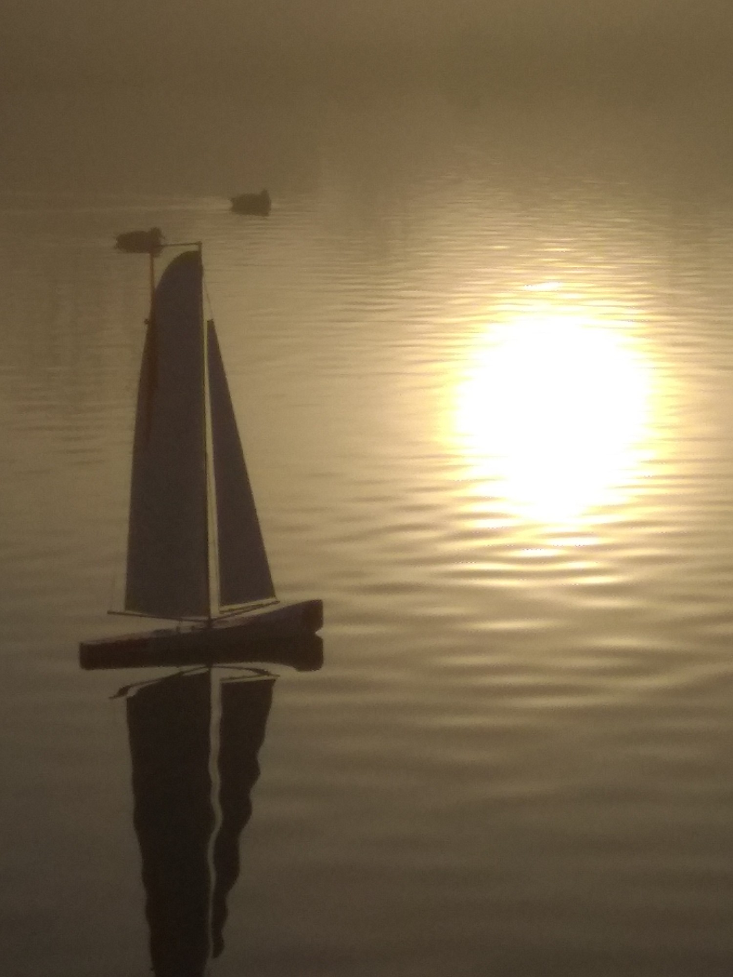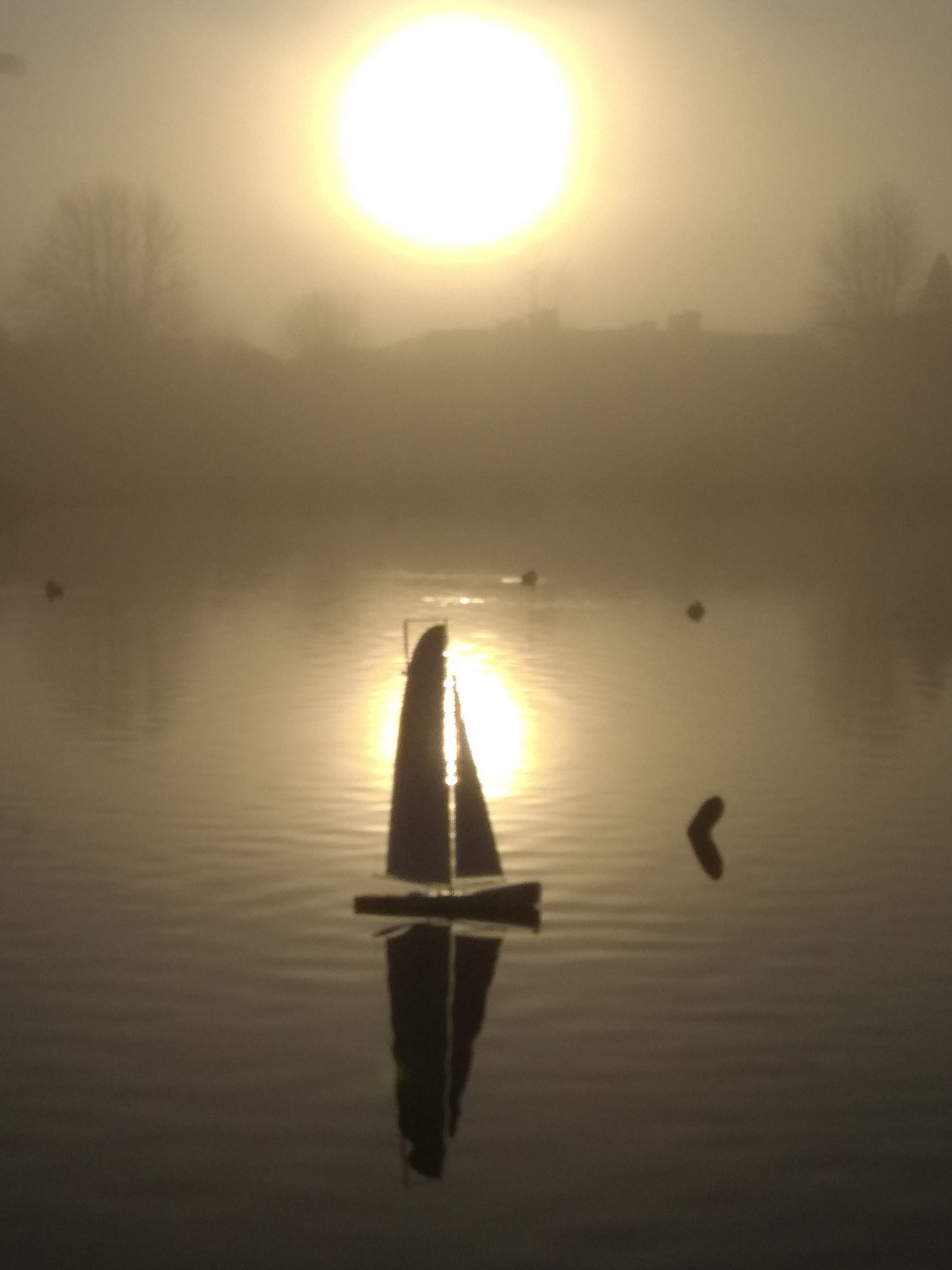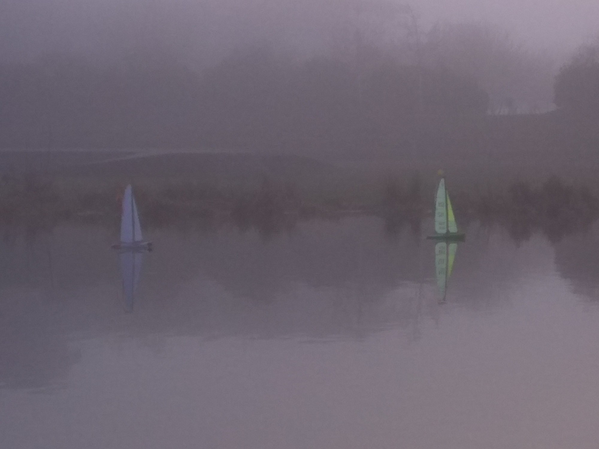 und zwei Hardcore-Segler bei dichtem Nebel (bei schönem Wetter kann jeder) auf dem See.