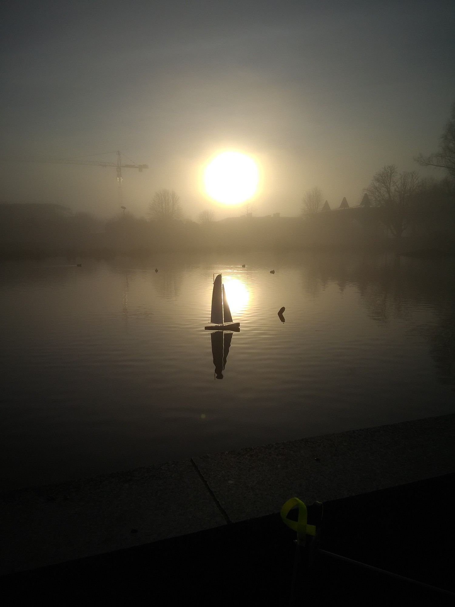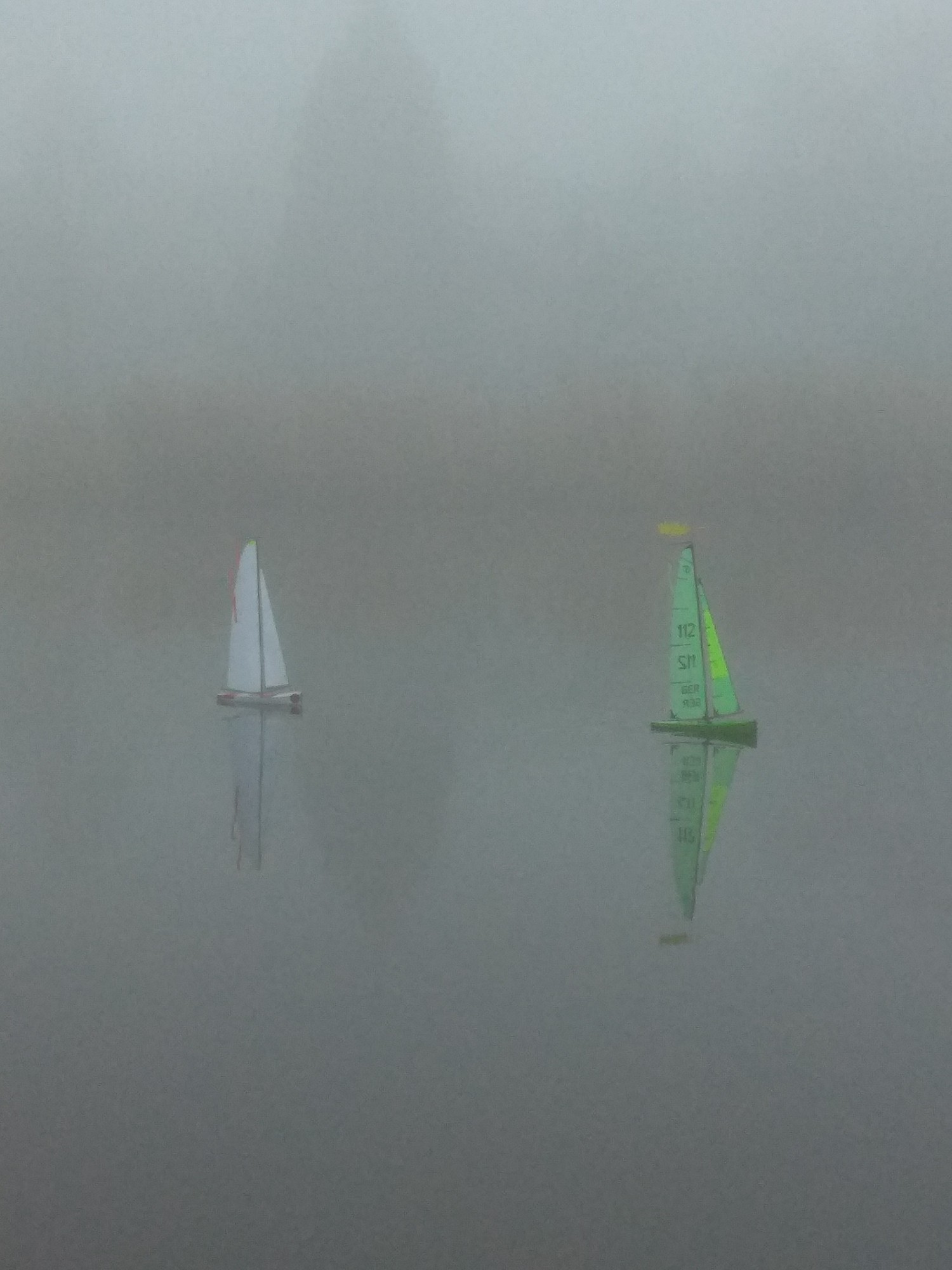 und zwei Hardcore-Segler bei dichtem Nebel (bei schönem Wetter kann jeder) auf dem See.