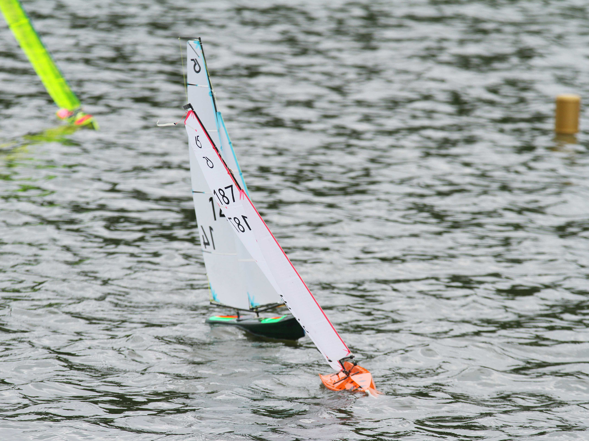 Nach den ersten drei Rennen erwischte uns ein Gewitterschauer und wir mussten für eine Stunde in den Autos abwettern. Kurz etwas essen und die ersten Erkenntnisse in den Boots- und Riggtrimm einfließen lassen, dann ging es weiter auf dem Wasser. Die Neueinsteiger Alex, Piet und Torsten W. hatten sichtlich Spaß zwischen den erfahreneren Seglern. Piet war erst zum dritten Mal mit einer Fernsteuerung in der Hand unterwegs und setzte Stück für Stück seine Kenntnisse aus den Opti Regatten um. Alex, eher Bastler und Windsurfer ohne Regattaerfahrung, ist im Vorfeld auch schon 2 Mal in kleiner 4er Gruppe ein paar Rennen gefahren und erfreute sich an seinem ersten frisch fertig gestelltem Bootsprojekt ... eine gedruckte Manta17. Das passende A Rigg dazu haben wir noch in der Nacht bis morgens drei Uhr zusammen geschneidert. Torsten W. ist vor 20 Jahren zuletzt IOM und M Boot gefahren. Wir konnten ihn im Winter für die kleine Bootsklasse begeistern, so dass sein Jugendhobby wieder auflebt. Er hatte seine Familie mit im Schlepptau und hat nach Rennen 6 auf Familienprogramm und „Sightseeing in Lübeck“ umgeschaltet.
