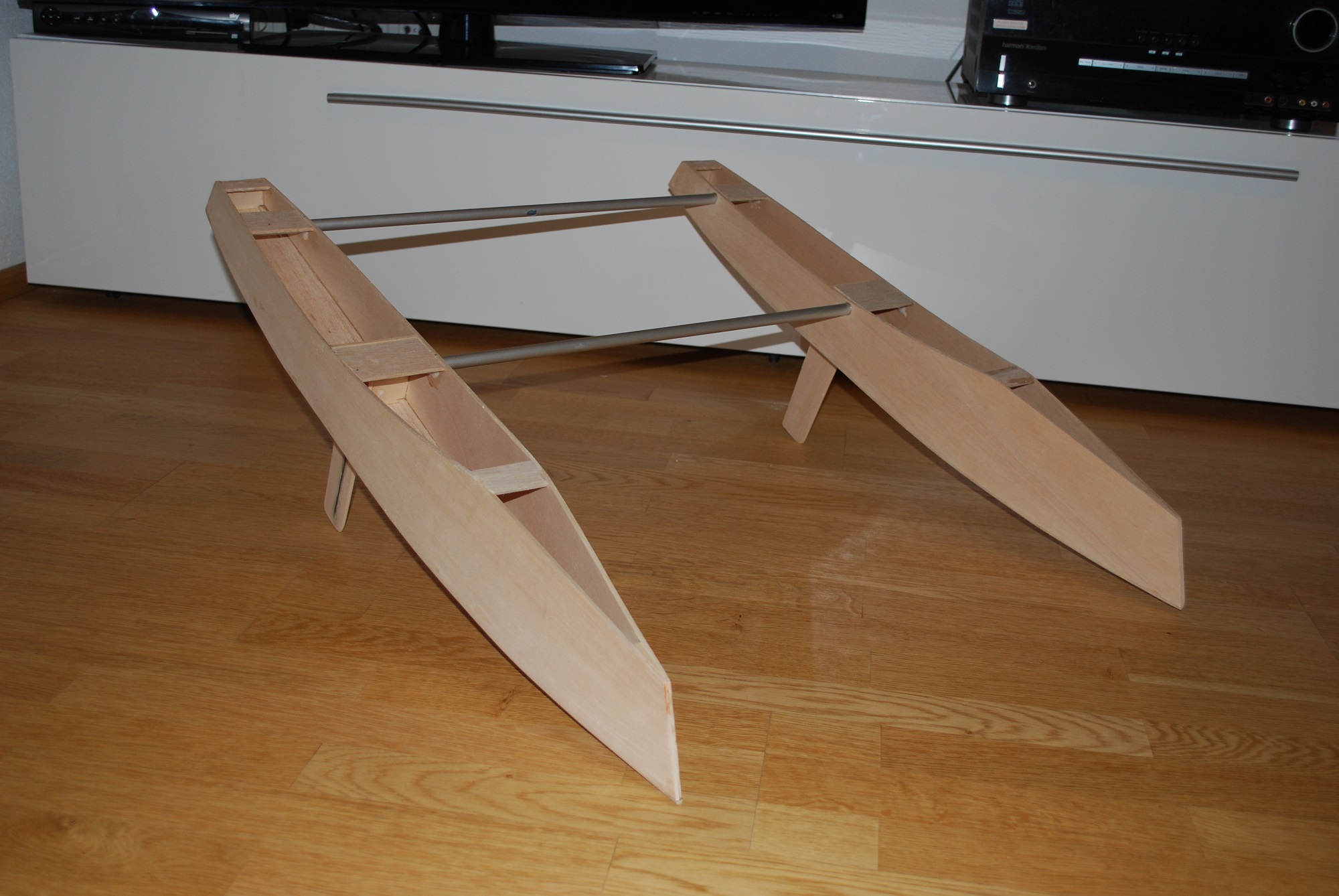 Auf den Fotos wirkt der vordere Beam ziemlich weit hinten. ich hätte da ein bisschen Bedenken was die Torsion der beiden Rümpfe zueinander angeht. Bei den Mini40ern haben die ganzen Boote mit Rohren als Beams das gleiche Problem. Die sind natürlich auch größer und schwerer und es wirken größere Kräfte.