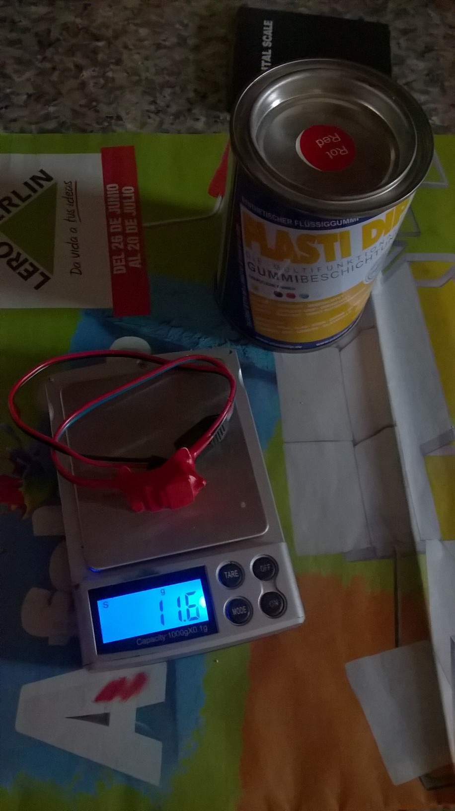 Das ganze kommt mit der MPX-Akkubuchse + 20cm Empfaengerkabel und “lackieren” mit Plasti-Dip auf 11,6g, seht selbst: