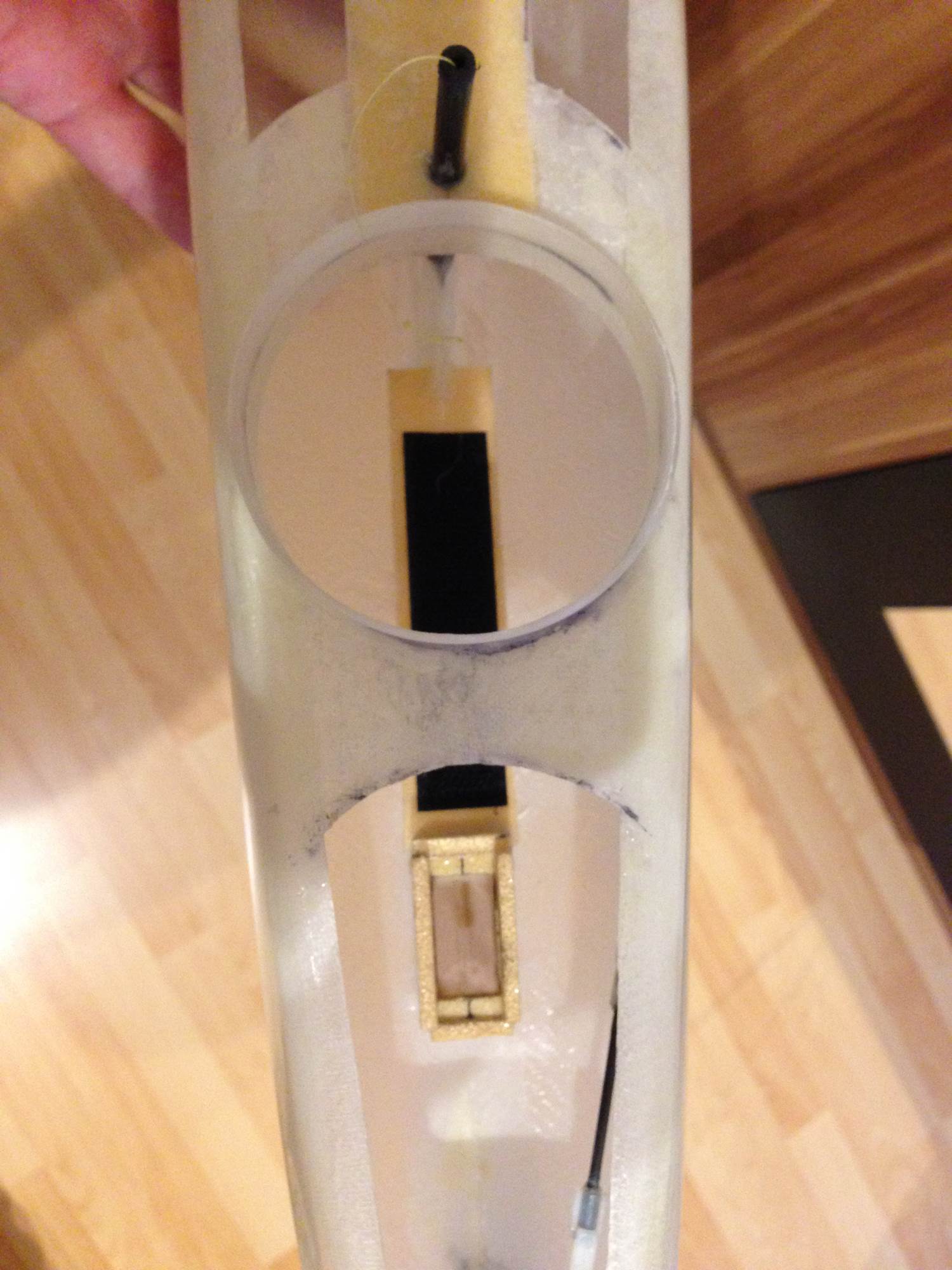Und zum anderen habe ich mit meinen dicken Fingern immer Probleme auf den Rumpfboden zu kommen, weshalb ein etwas höher gelegter Akku mir sehr entgegenkommt