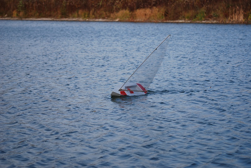 Jetzt geht es an den Feinschliff der Segel. Bin ja davon ausgegangen das ich den Baum im Bereich des ersten Drittels nach oben ziehen muß, da er sonst zu leicht eintaucht. Aber ich glaube das es erst beim B-Rigg nötig sein wird.